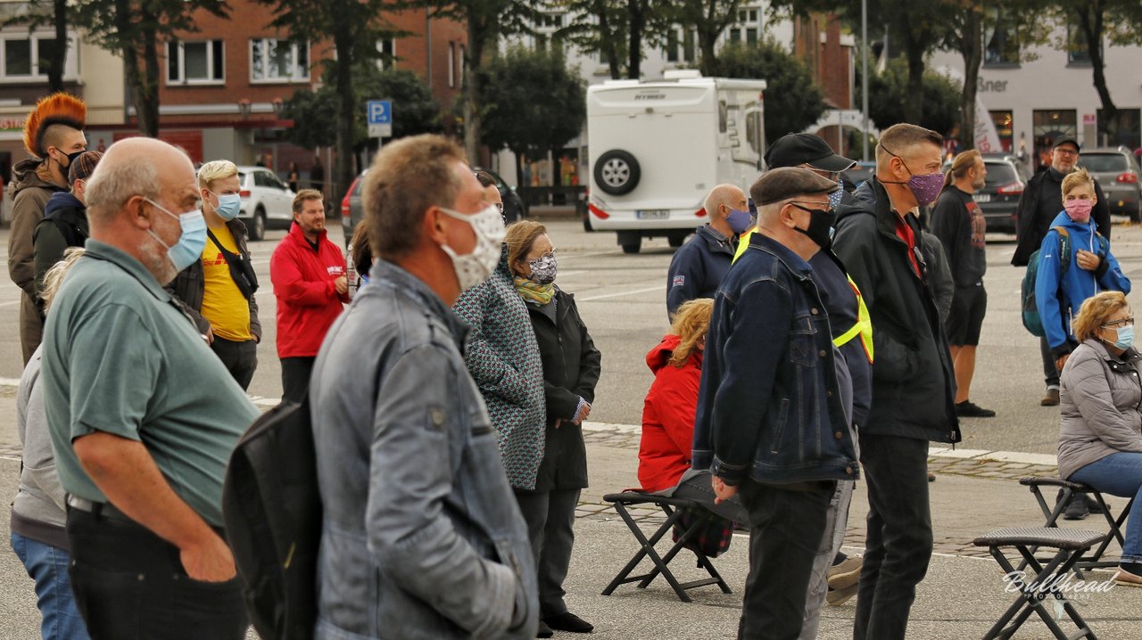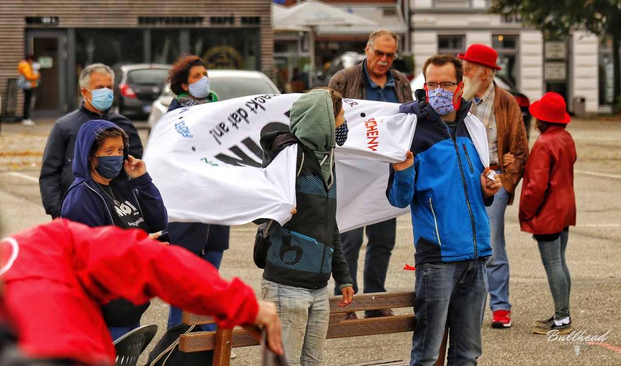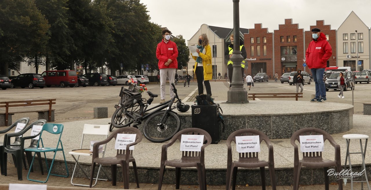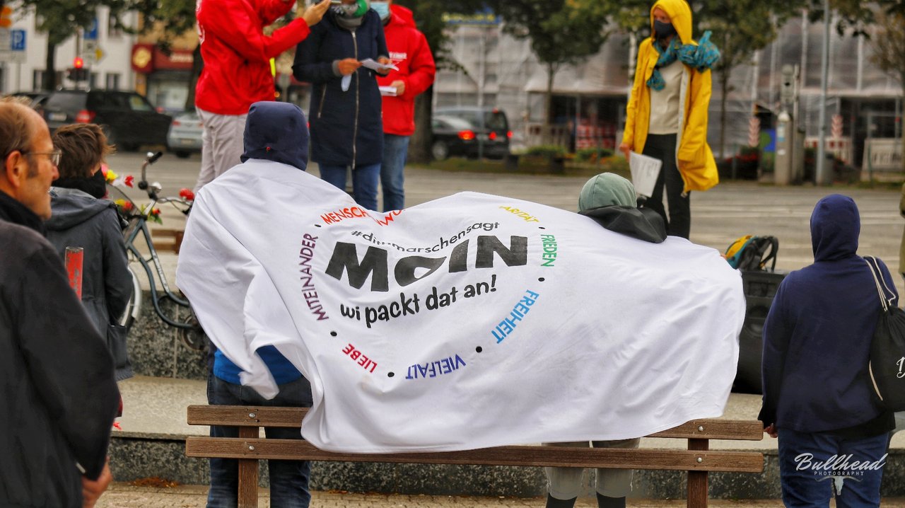 Auf der kurzfristig organisierten Kundgebung auf dem Heider Marktplatz am Sonnabend, den 12. September machten trotz widrigem Wetter knapp unter 100 Menschen deutlich, dass auch in Dithmarschen Platz für die Flüchtlinge aus dem abgebrannten Lager in Moria auf der griechischen Insel Lesbos ist. Aufgerufen hatten zu dieser Kundgebung die GRÜNEN, die Linke, "Dithmarschen sagt Moin" und andere. Die Redner*innen machten deutlich, dass eine sofortige Aufnahme der Flüchtlinge aus Moria im Sinne der für alle geltenden Menschenwürde erfolgen muss.