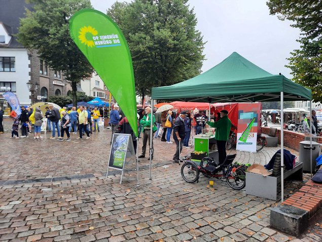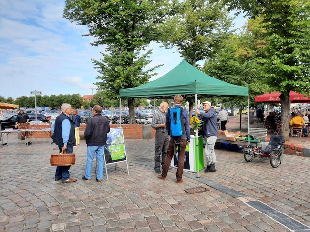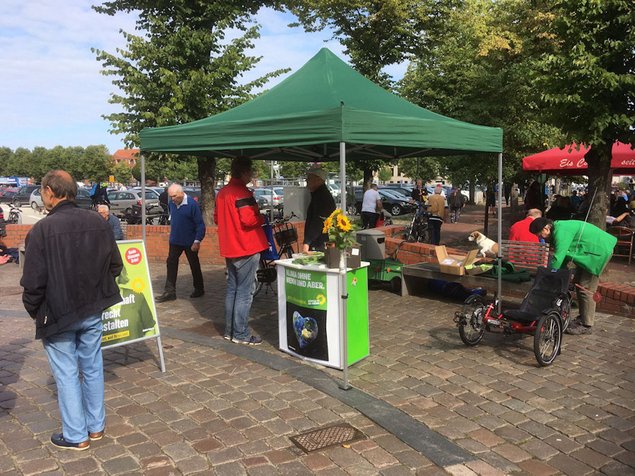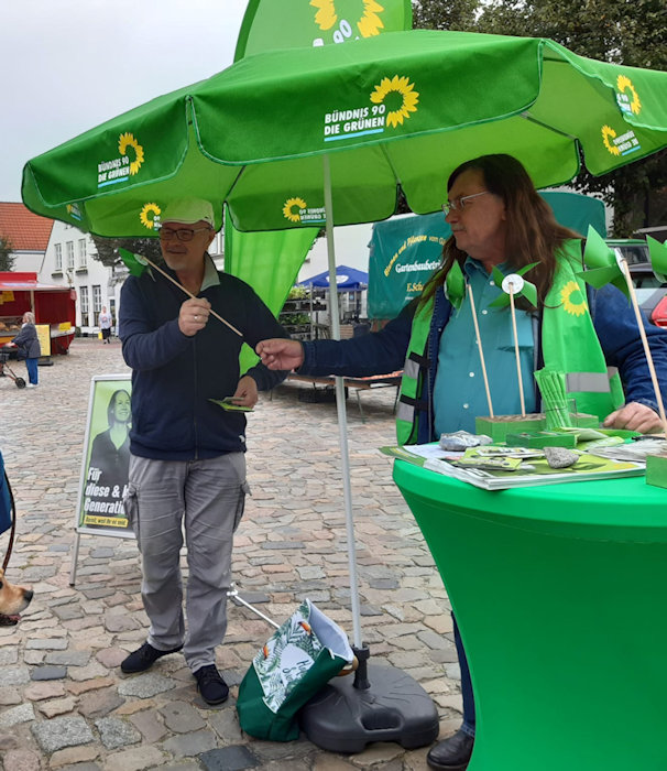 Markttag in Heide. Ab 9:00 Uhr war Hochbetrieb und unser Stand war ein echter Hingucker. Das Abflauen der Corona Pandemie hat die Heider Innenstadt wieder gut gefüllt. Alles scheint im Moment wieder gut. Hoffen wir, dass es so bleibt. Die Heider haben den Stand zwar ausgiebig betrachtet, jedoch war das Nahen des Wahltermins noch nicht bei jedem präsent. Wir werden weiter dabei sein und die Aufmerksamkeit auf die Grünen richten.